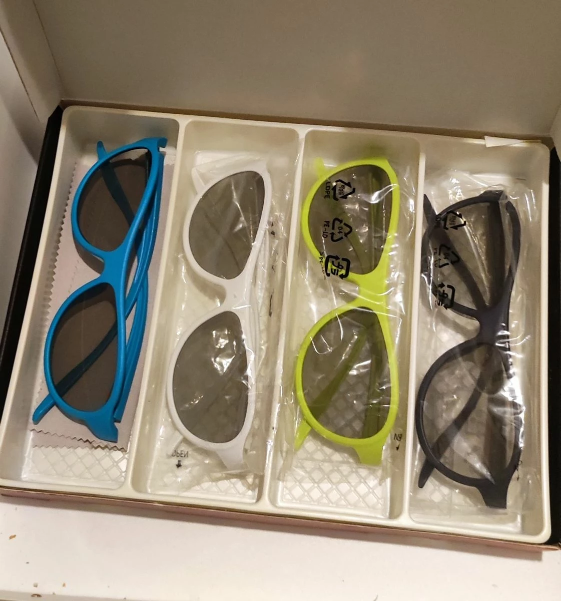 4 ζευγάρια γυαλιά 3d lg cinema AG-F315 με το πανάκι καθαρισμού τους, μόνο το ένα έχει χρησιμοποιηθεί ελάχιστα.
