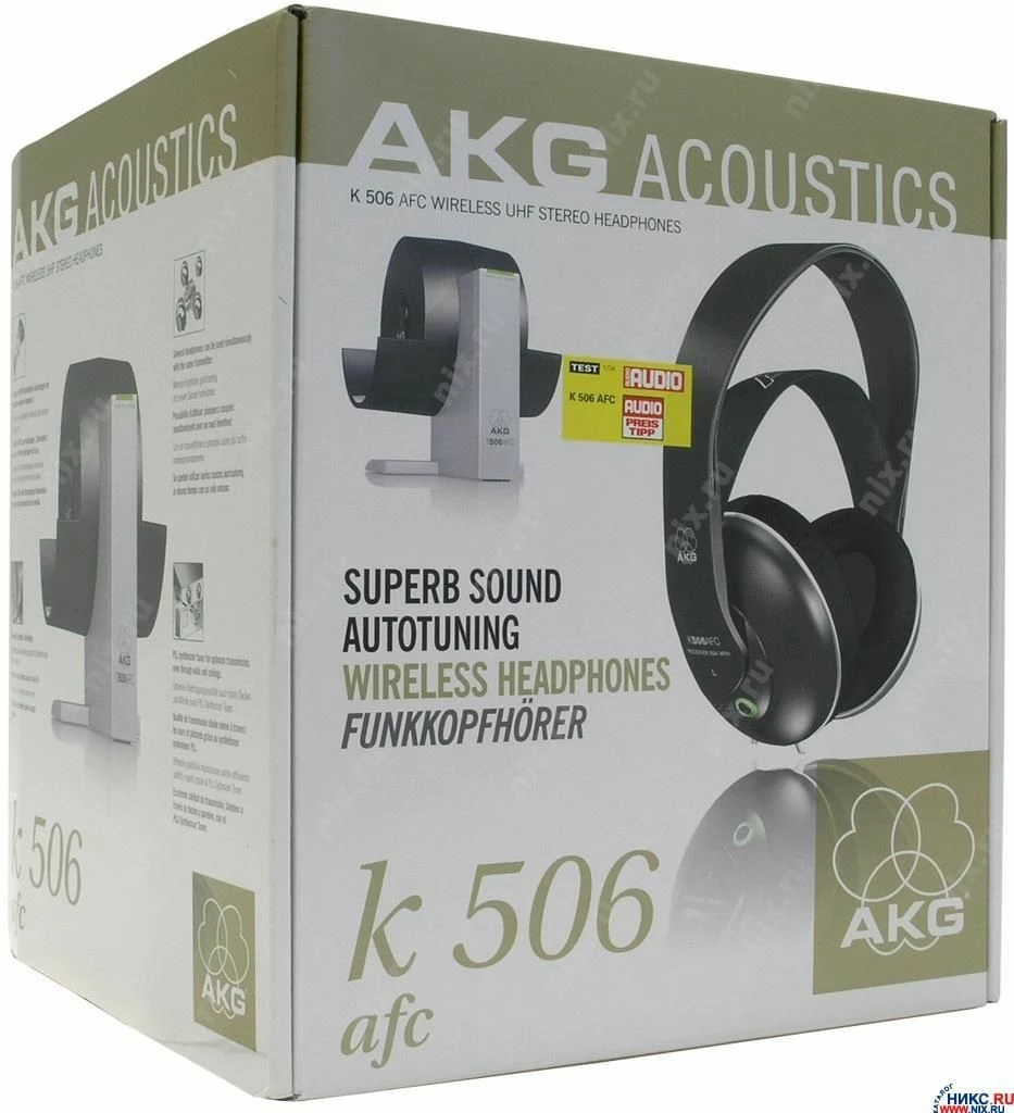 3 Channel PLL Synthesizer for secure reception. Auto Tuning function. Self-adjusting leather headband optimally adapts any head shape. Base station can also be used as a storage place and charging base (3 in 1). Leave headphones can charge your switched on NiMH batteries, operating time approx. 20 hours. The K 506 AFC may be an extremely comfortable wireless headphone with a striking design, but it will also satisfy the most sophisticated ear. The XXL transducer using AKG’s patented Varimotion technology gives a sweeping, full-bodied sound with maximum spatial effect and precision – ideal for dynamic music with contrasting sequences. This top-of-the-range model in the wireless headphone class is exceptionally easy to operate. Its plug & play function makes it easy to connect to any audio source: fine tuning is taken care of automatically by the Automatic Gain Control (AGC). Several sets of headphones can be operated simultaneously from a single transmitter. The use of radio technology ensures transmission of the audio signal – even through ceilings and walls (with a range of up to 100 m under ideal transmission conditions, free-field). A self-adjusting headband provides an optimal fit to any shape of head, and the ear pads can be removed for easy cleaning.