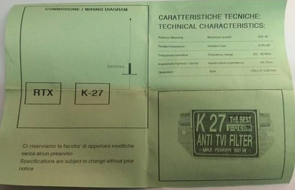 Πωλείται καινούργιο φίλτρο CB RMS K27 ANTI TVI Low Pass 300W. .Φωτογραφίες του φίλτρου πραγματικές.