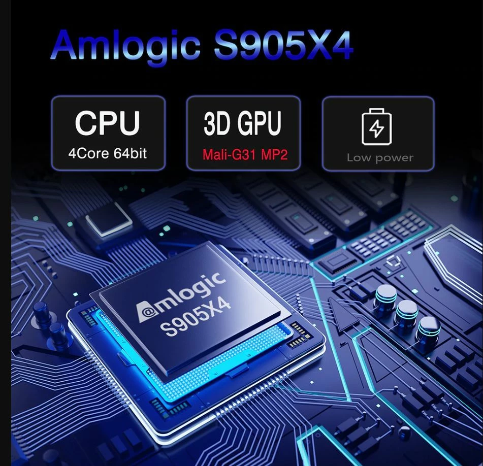 CPUAmlogic S905X4 64-bit quad core ARM® Cortex™ A55 CPU