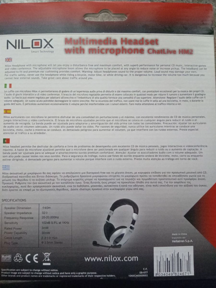 Vendora Nilox ακουστικά, Headset ενσύρματο Μαύρο ασημί 10NXCM0000002