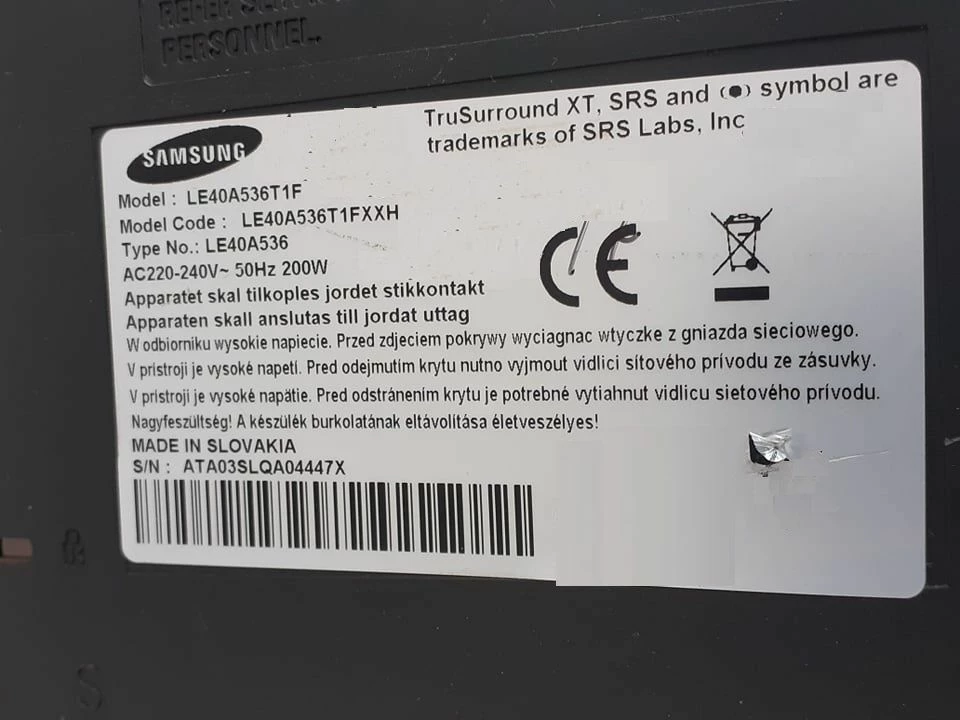 SAMSUNG MODEL. LE40A536T1F