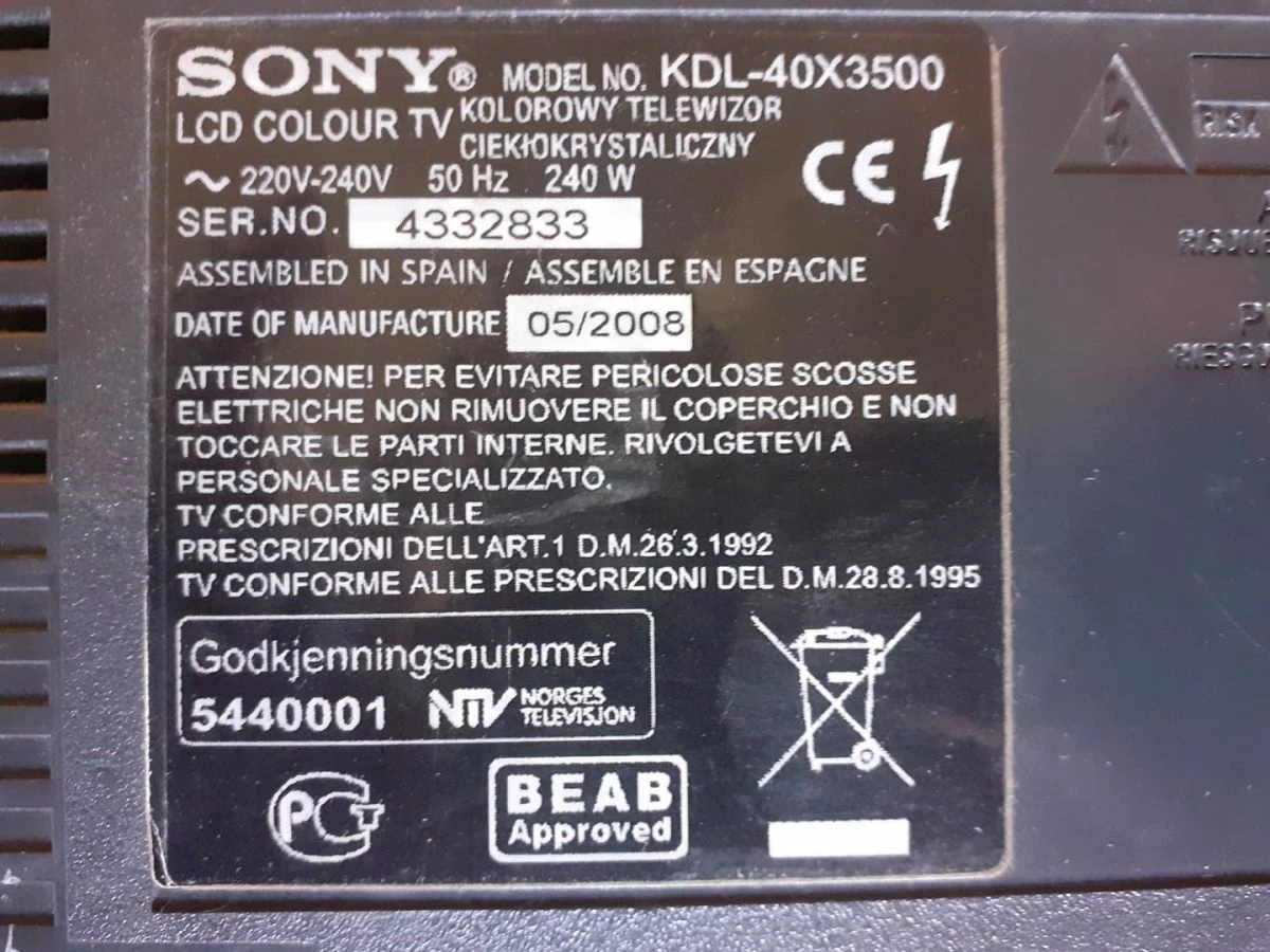 SONY BRAVIA MODEL. KDL-40X3500