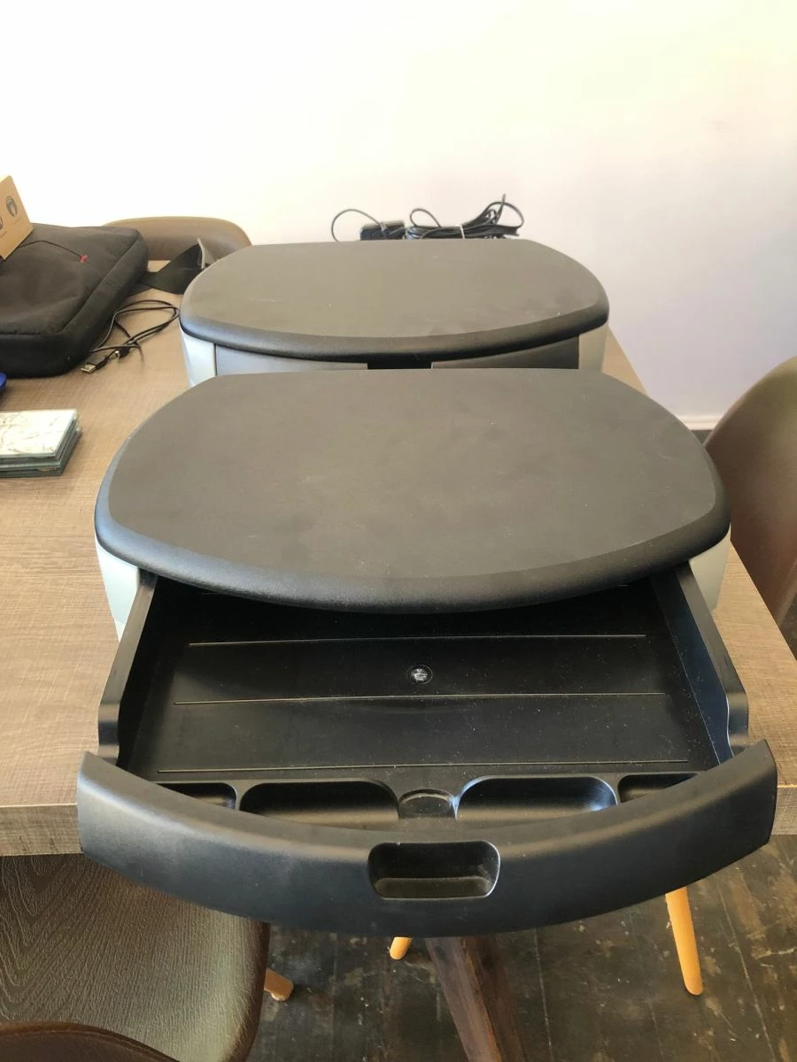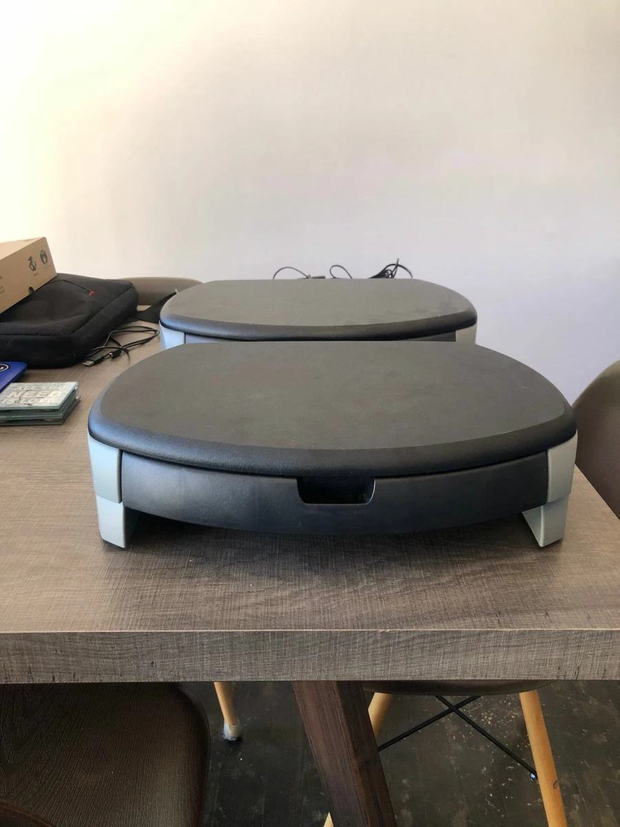 Βάση για οθόνη ή laptop με συρτάρι. Διαθέσιμα 2 τεμάχια στα 15€ το καθένα.
